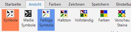 Dank 7 Anzeigemodi behalten Sie immer den Überblick über das Aussehen Ihrer Vorlage. Sie können sich nur die Symbole anzeigen lassen oder Symbole auf einem farbigen Hintergrund betrachten. Und wenn Sie möchten, können Sie sogar eine realistische Version des fertig gepainteten Bildes ansehen.